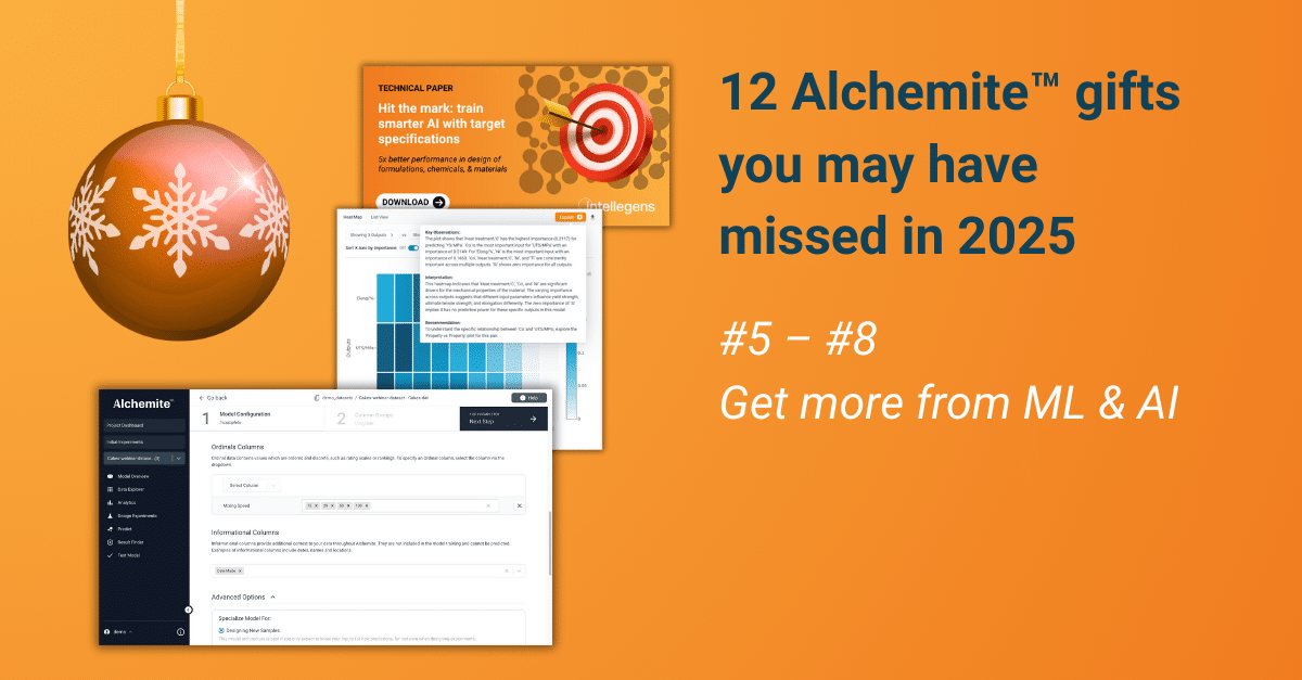 Continuing our seasonally-themed look back at some of the Alchemite™ highlights from this year, here are four new features that enabled you to get more from your use of machine learning, and to augment your Alchemite™ experience through new generative AI capabilities.