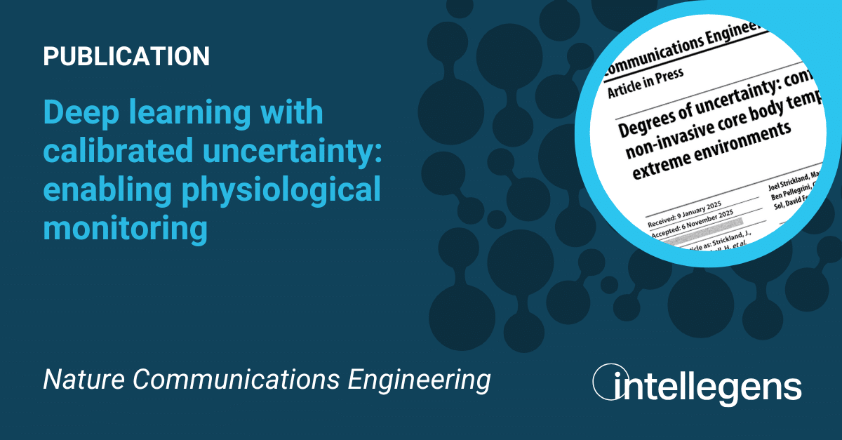 A new paper, authored by Intellegens scientists with collaborators from Equivital, Coventry University, and the University of Cambridge, develops a deep learning method to support physiological monitoring, accounting for the key safety-critical issue of uncertainty.